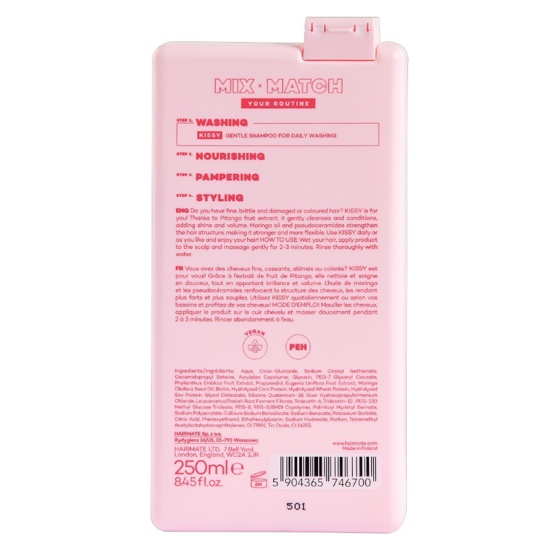 Hairmate Kissy Shampoo ist das perfekte Shampoo für feines, kraftloses oder glanzloses Haar. Seine leichte Formel verleiht Fülle, Geschmeidigkeit und Schwung , ohne das Haar zu beschweren, und sorgt für ein volleres, frischeres und sichtbar dickeres Haar.