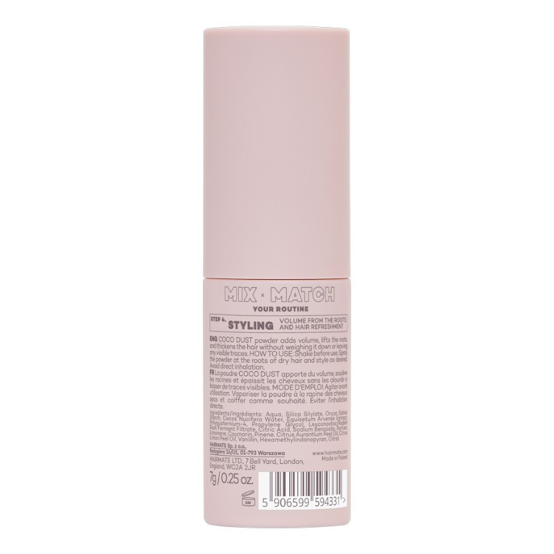 Hairmate Coco Dust Volumizing Powder ist ein leichtes Puder, das dem Haar sofort Volumen und Textur verleiht. Es wirkt außerdem als Trockenshampoo , indem es überschüssiges Öl absorbiert und das Haar zwischen den Haarwäschen auffrischt.