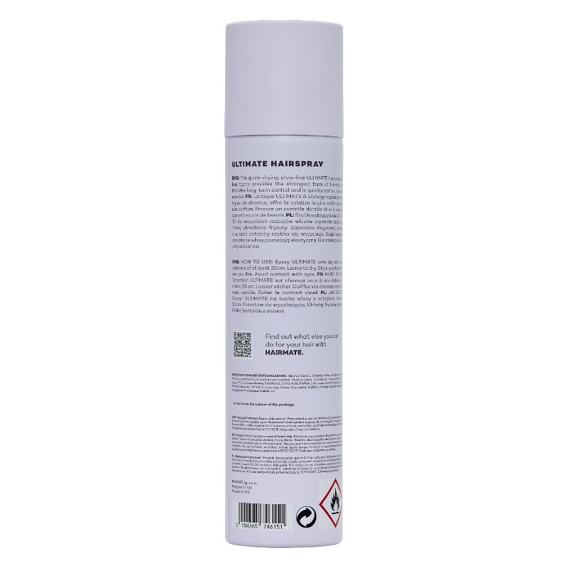 La Hairmate Ultimate Hairspray Strong es una laca de alta resistencia que fija el peinado sin apelmazarlo y con un acabado natural. Proporciona un control duradero, secado rápido y mantiene la flexibilidad del cabello.