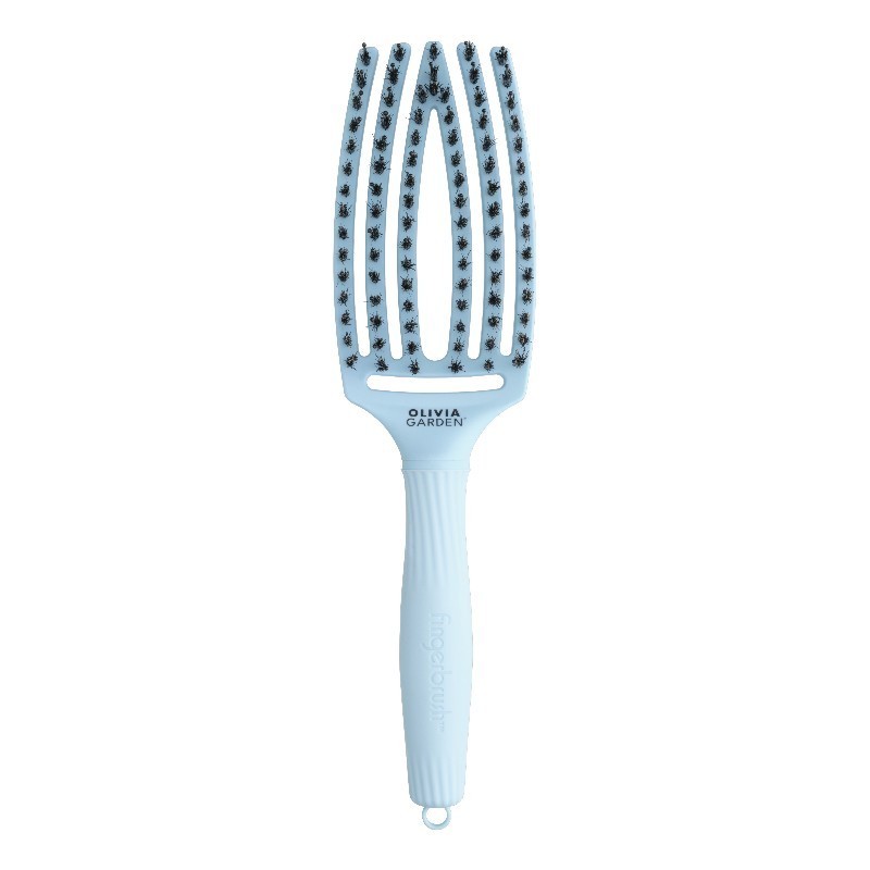 Brosse Fingerbrush Olivia Garden en poils de sanglier et nylon, bleu pastel