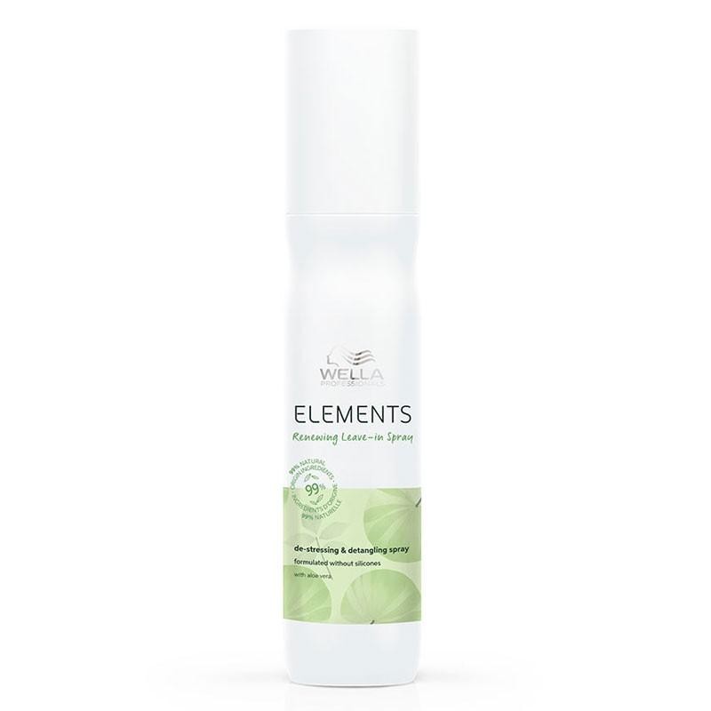 Wella Elements Leave In Spray à l'Aloe Vera, un spray démêlant instantané sans rinçage pour tous les types de cheveux. Sa formule à 99% d'origine naturelle, parmi lesquels se distinguent l'extrait d'aloe vera et l'extrait d'huile d'olive, hydrate en profondeur et adoucit les cheveux, facilitant le peignage, tout en les protégeant des frisottis et des outils thermiques, et prévient la casse. Il ne contient pas de silicones.