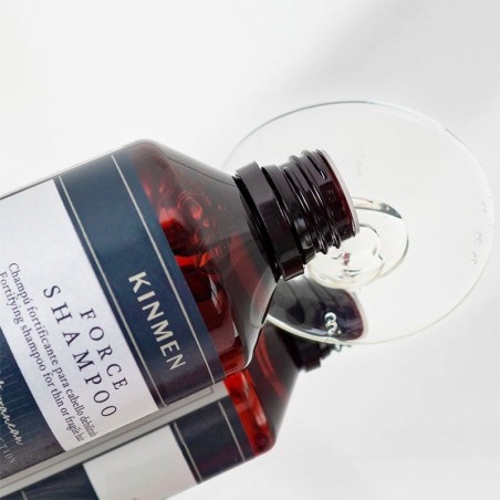 Shampoo fortificante para cabelos frágeis e enfraquecidos Kinmen Force. Projetado para evitar a queda de cabelo causada por mudanças sazonais, hormonais e dietéticas. Ele evita a queda persistente de cabelo e também ajuda a promover o crescimento de novos capilares.
